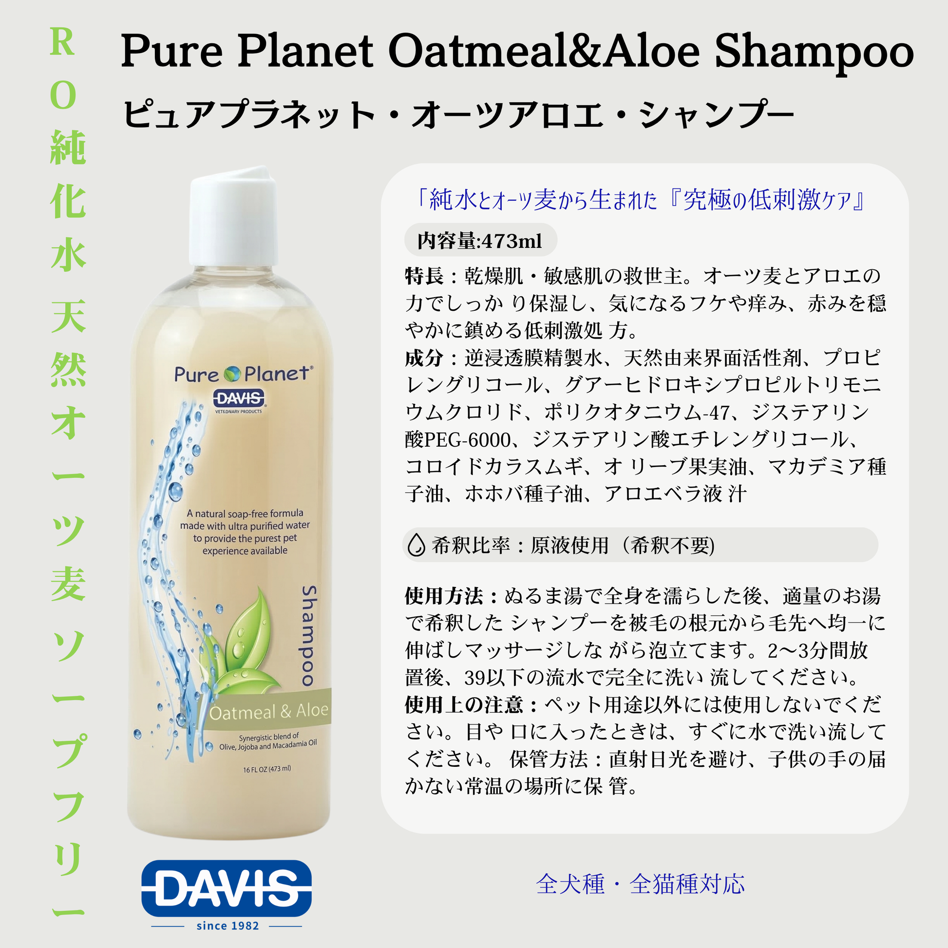 ピュアプラネット・オーツアロエシャンプー・犬猫用シャンプー(ピュア・オーツアロエ)